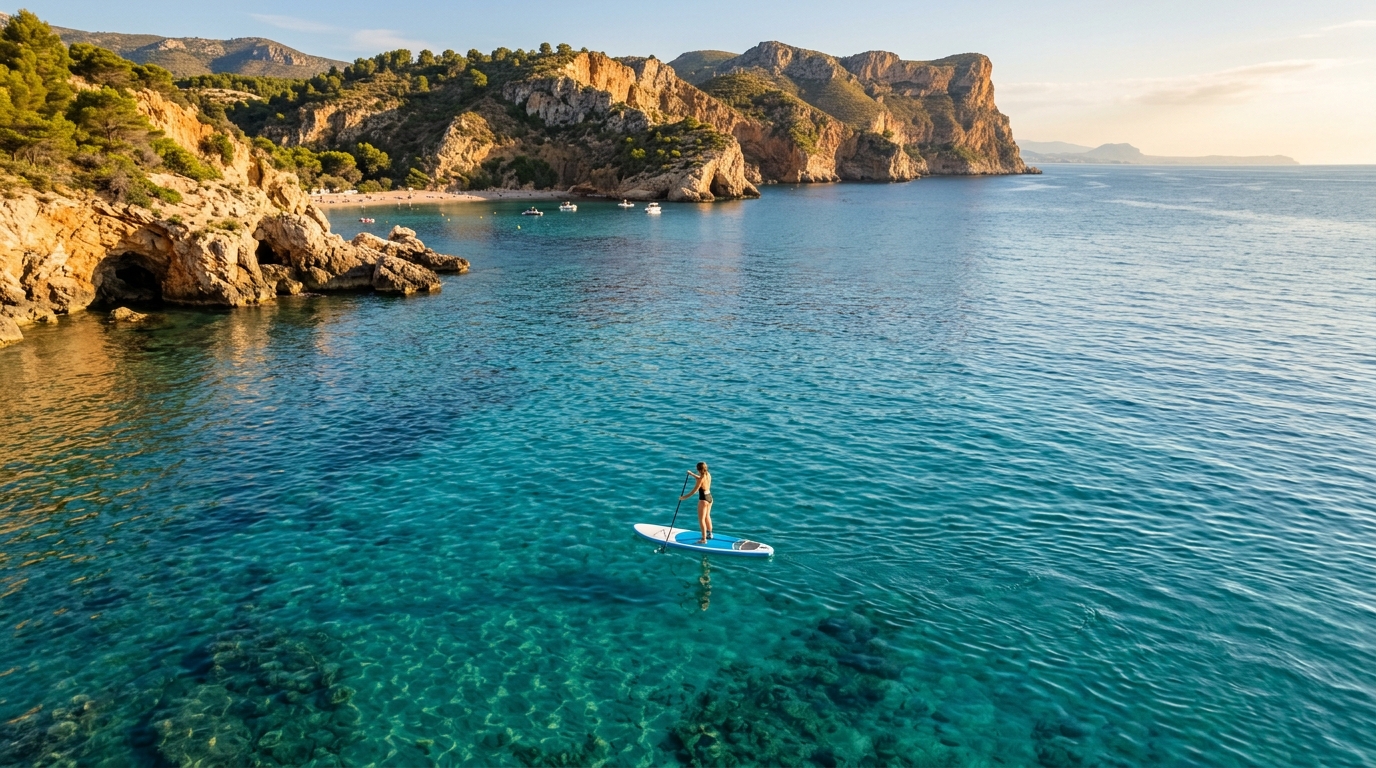 El Mediterráneo, a menudo en calma y como un espejo, ofrece las condiciones más seguras para aprender paddle surf. Descubre calas, acantilados y el litoral de Torrevieja desde una perspectiva única — de pie sobre el agua.